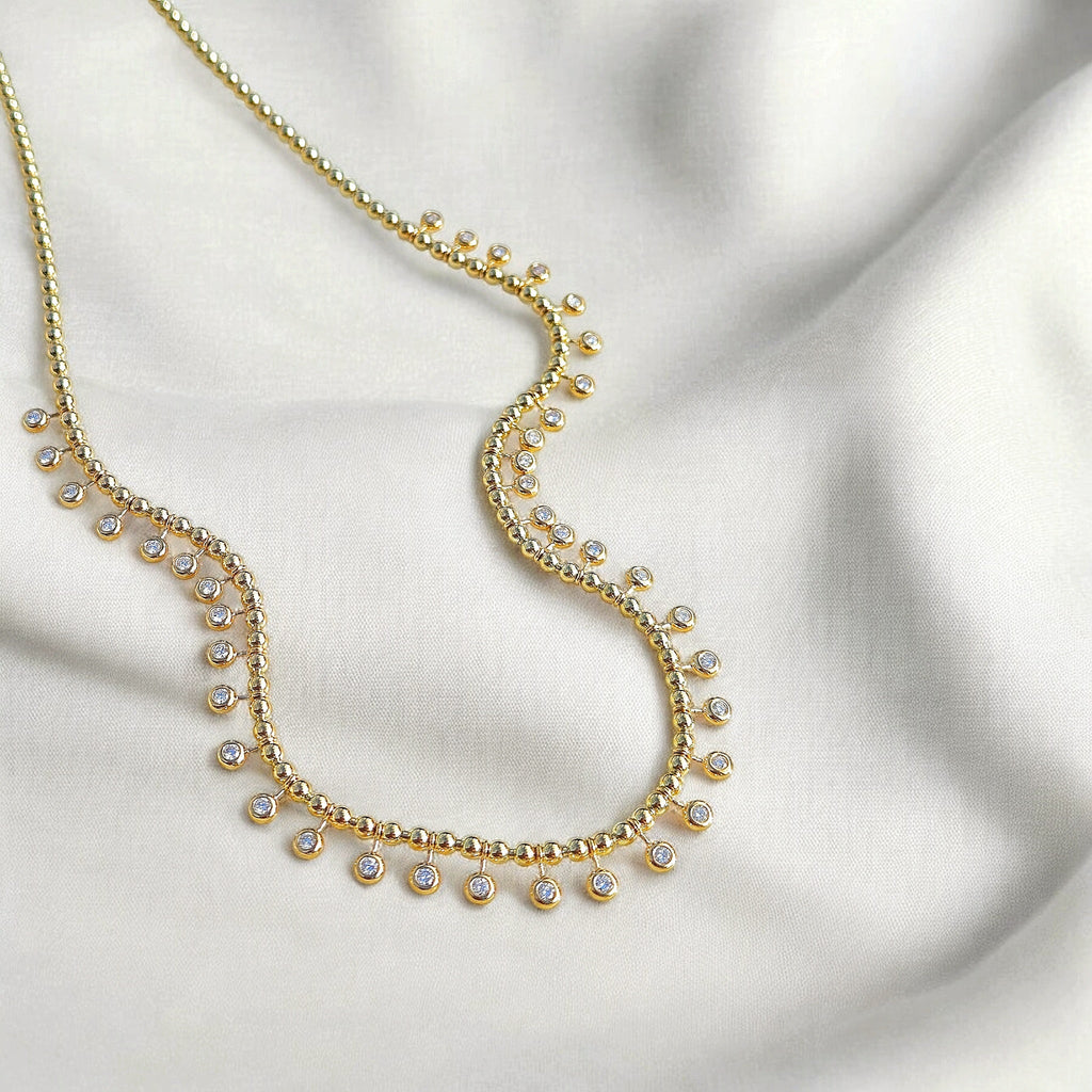 Fun, playful, effervescent arrangements of diamonds and gemstones on attractive 18k gold ball chains. Contact me to start on your custom project of a dreamy Mimosa treasure.